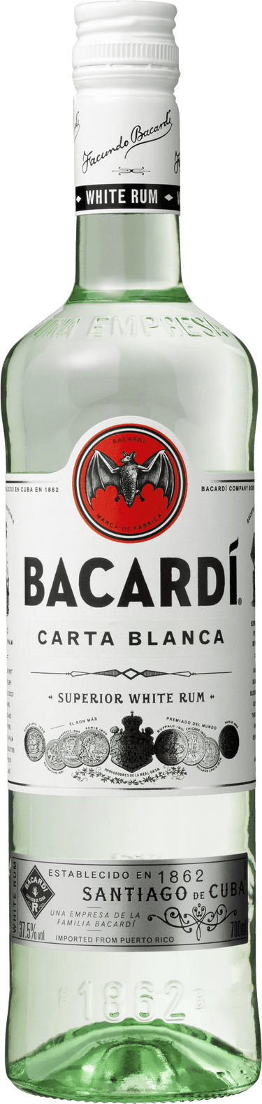 Tør og let underspillet; Bacardi Carta Blanca er den perfekte rom, når der skal mixes lækre cocktails. Den har tydelige noter af vanilje, samt et frugtigt præg af abrikos, lime, kokosnød og banan. Oveni dette finder man også et vist element af mandler og let blomstrede toner af lavendel, roser og appelsinblomster. Den distinkte blødhed formes gennem et hemmeligt blend af kul samt lagring på egetræsfade.