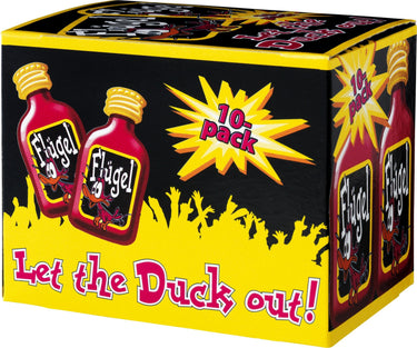 Flügel er det evigt populære partyshot i den ikoniske, lille flaske med den selvlysende and. Hvis dine tanker straks begynder at vandre mod afterski og tyrolermusik er du ikke ene; det søde vodkashot med smag af søde bær og energidrik er mere eller mindre fast inventar på afterski-barer, men den er naturligvis en populær gæst til de fleste fester.